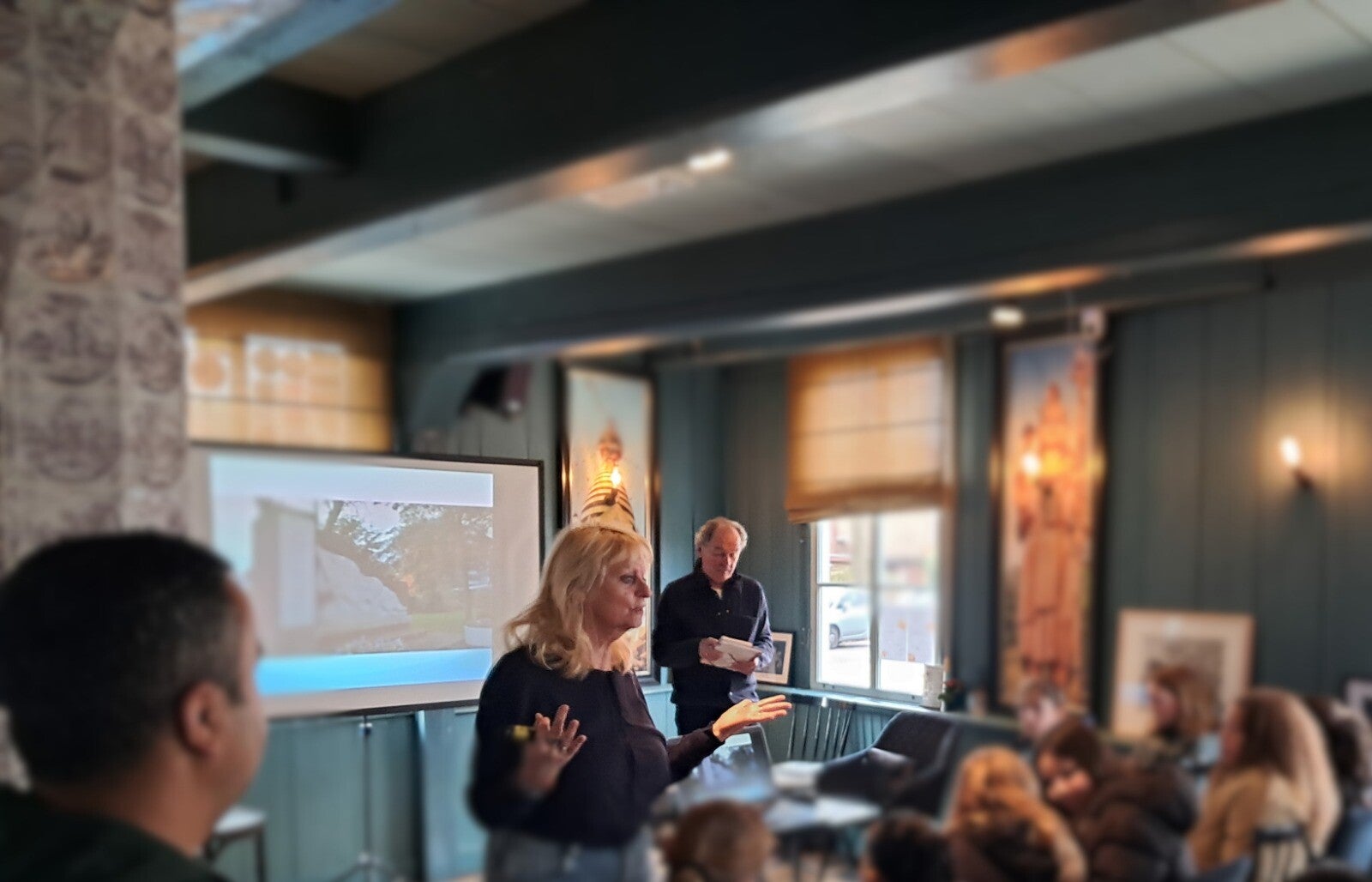 Tegelijkertijd vierden we de verjaardag van Bert van de Peet en Anne Vrieze, die trakteerde op een drankje en natuurlijk taart van Bakkerij de Wijn!
